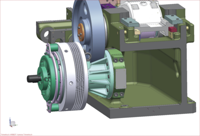 Nell’ambito del perfezionamento tecnico dal modello AMP 20 all’AMP 20 N è stato inoltre esaminato in modo approfondito anche il gruppo costruttivo albero del volano. Diversi requisiti tecnici, ma anche il difficile reperimento della frizione e del freno, hanno imposto una sostanziale riprogettazione del gruppo costruttivo.